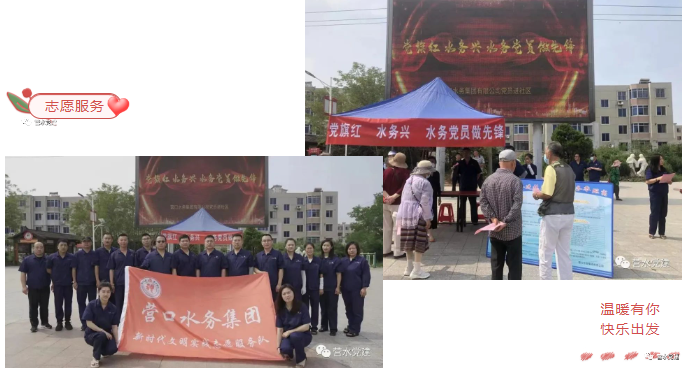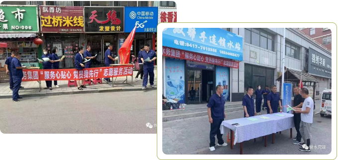 集團黨委組織200余名黨員志愿者走進社區(qū)、小區(qū),分別以“黨旗紅 企業(yè)興 水務(wù)黨員做先鋒”“水務(wù)黨員進社區(qū) 志愿服務(wù)暖人心”“服務(wù)心貼心 黨員我先行”為主題開展志愿服務(wù)活動。通過設(shè)立供水便民咨詢臺,向居民介紹用水小常識、耐心地解答居民們?nèi)粘I钣盟畣栴},進一步拉近與群眾的距離,切實將暖心貼心用心的優(yōu)質(zhì)供水服務(wù)帶進千家萬戶?;顒又?,共發(fā)放宣傳資料500余張,普及用水知識、解答用戶疑問1000余人次,維修檢查用水設(shè)施55戶。