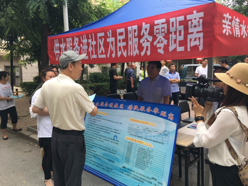 活動(dòng)現(xiàn)場(chǎng),氣氛熱烈,共產(chǎn)黨員們佩戴黨徽,熱情接待小區(qū)內(nèi)用戶的各類(lèi)咨詢與訴求,用戶對(duì)水務(wù)集團(tuán)工作人員的解答都非常滿意。現(xiàn)場(chǎng)還設(shè)置了涵蓋供水價(jià)格、用水常識(shí)等內(nèi)容的宣傳版10塊及“供水服務(wù)進(jìn)社區(qū),為民服務(wù)零距離”、“親情水務(wù)、情潤(rùn)萬(wàn)家”、水務(wù)熱線3363456等內(nèi)容的宣傳條幅,“跟著郭明義學(xué)雷鋒,水務(wù)集團(tuán)在行動(dòng)小分隊(duì)”志愿服務(wù)的旗幟迎風(fēng)飄揚(yáng)……